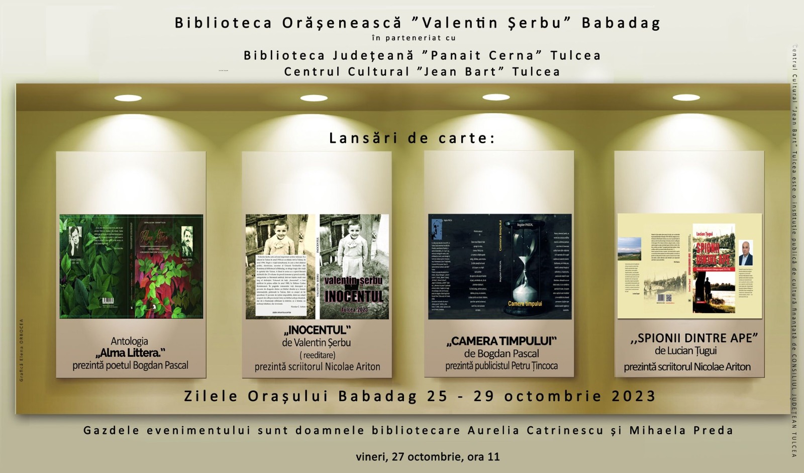 EVENIMENT INVITAȚIE PREZENTARE DE CARTE „SPIONII DINTRE APE”, VINERI, 27 OCTOMBRIE 2023, BIBLIOTECA „VALENTIN ȘERBU” BABADAG, ORA 11,00 🎧 Ascultă articolul "INVITAȚIE PREZENTARE DE CARTE „SPIONII DINTRE APE”, VINERI, 27 OCTOMBRIE 2023, BIBLIOTECA „VALENTIN ȘERBU” BABADAG, ORA 11,00" 🔄 Generarea fișierului audio poate dura până la 180 de secunde la prima ascultare. ▶️ Play ⏸️ Pauză ⏹️ Stop Viteză: Te rog lasă gol acest câmp Bună ziua Îmi pare bine să te cunosc. Înscrie-te pentru a primi articole autentice cu un conținut istoric în căsuța de email. Nu facem spam! Citește politica noastră de confidențialitate pentru mai multe informații. Verifică-ți dosarul de intrări sau spam pentru a-ți confirma abonarea. Anterior „Mistere, spioni și Tulcea veche cât cuprinde” - Clubul de lectură pentru adolescenți BIBLIO Tulcea Mai nou Volumul „Spionii dintre ape” - recenzie de Nicolae C. Ariton S-ar putea să-ți placă și Votul în atmosferă de sărbătoare noiembrie 27, 2024 Duiliu Zamfirescu împotriva lui Alexe Avramide. Un proces care aduce Europa în fața instanței tulcene. aprilie 19, 2026 Acte de corupție din armată ianuarie 24, 2024 Lasă un răspuns Anulează răspunsulAdresa ta de email nu va fi publicată. Câmpurile obligatorii sunt marcate cu *Nume * Email * Site web Salvează-mi numele, emailul și site-ul web în acest navigator pentru data viitoare când o să comentez. Da, adaugă-mă la lista ta de corespondență Comentariu