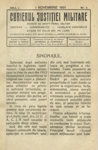 [4] Avocat V. Stănescu, articolul „Spionajul”, Curierul Justiției Militare, nr. 8 și 9, 1 februarie 1921, fila 32, colecția digitală Biblioteca Centrală Universitară „Lucian Blaga” Cluj
